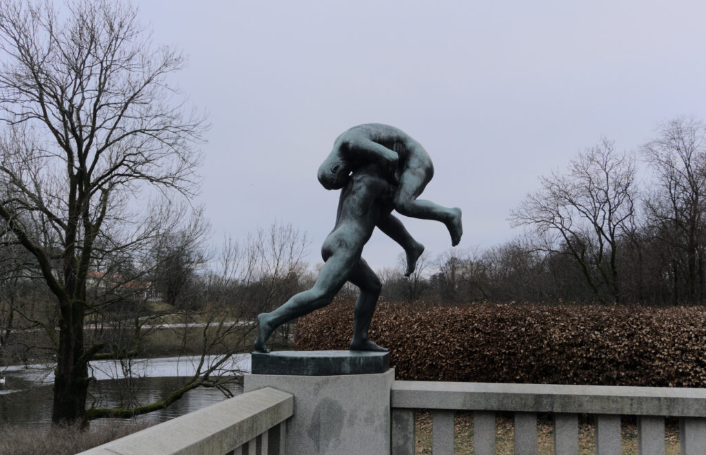 Today was a long day of many online meetings, and I didn’t have the energy to go out into the forest or the mountains like I often do. Instead, I opened my photo library and revisited images I took earlier this year – sculptures at the Vigeland parc in Oslo, and trees mirrored in water during a countryside walk.
